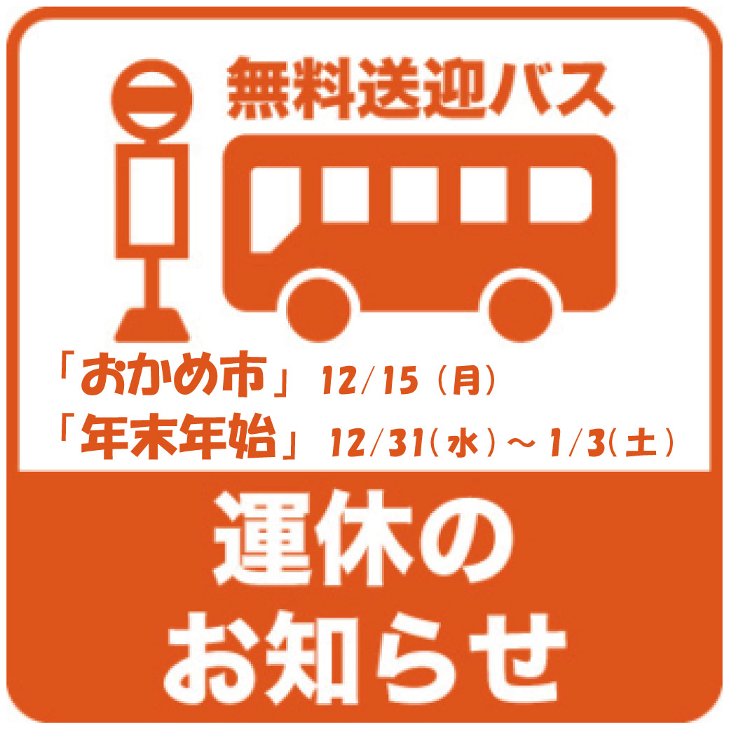 送迎サービス運休止のお知らせ 12月15日(月)・12/31(水)~1/3(土)