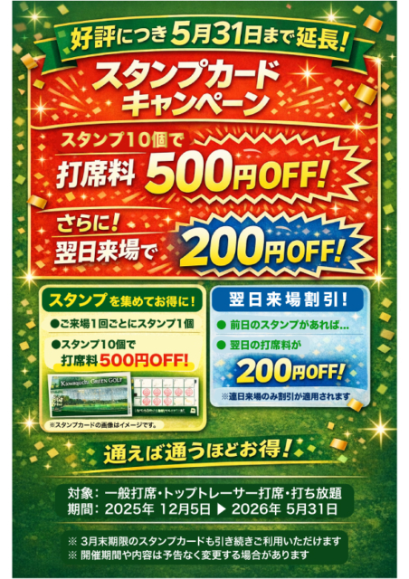 好評につき延長!スタンプカードキャンペーン(5月31日まで)